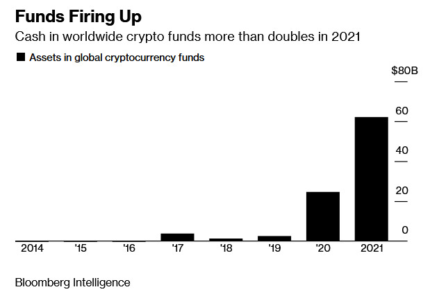 Cash in worldwide crypto funds more than doubled in 2021. Crypto investment managers had $62.5 billion in assets at the end of 2021, while crypto funds attracted record inflows of $9.3 billion in 2021, up from $6.8 billion in 2020, as institutional adoption grew. Despite ongoing volatility and some ongoing security concerns, crypto assets will have another strong year and enjoy broader mainstream recognition in 2022. Now a multi-trillion-dollar asset class, crypto is on the radar of fund managers and family offices, and will continue to garner both retail and institutional investor participation in 2022.